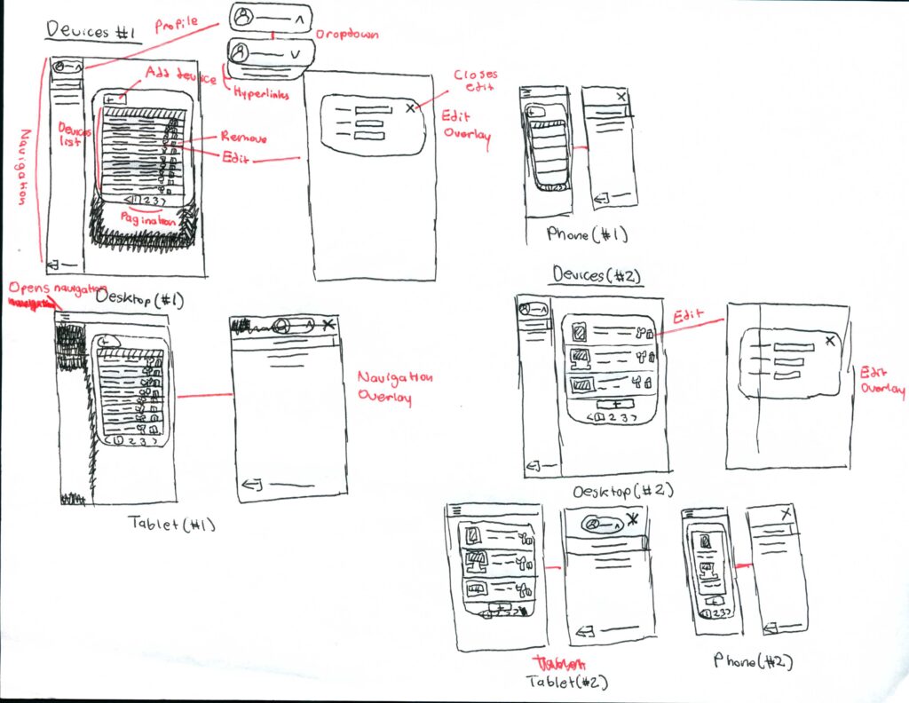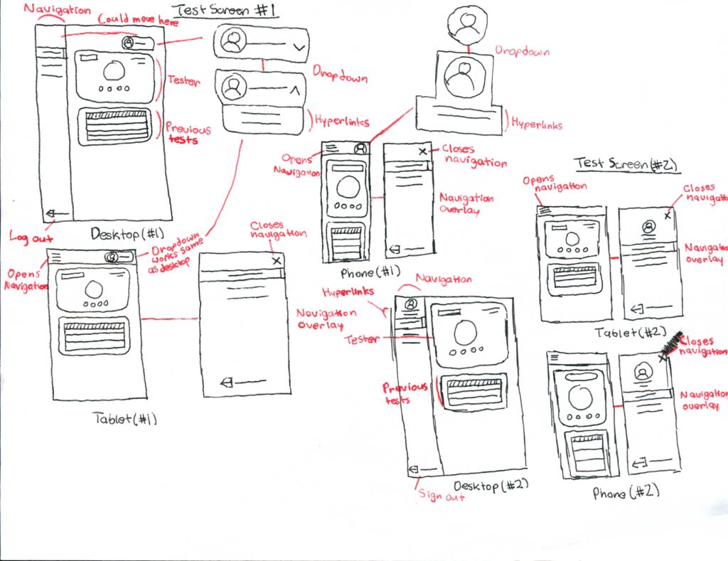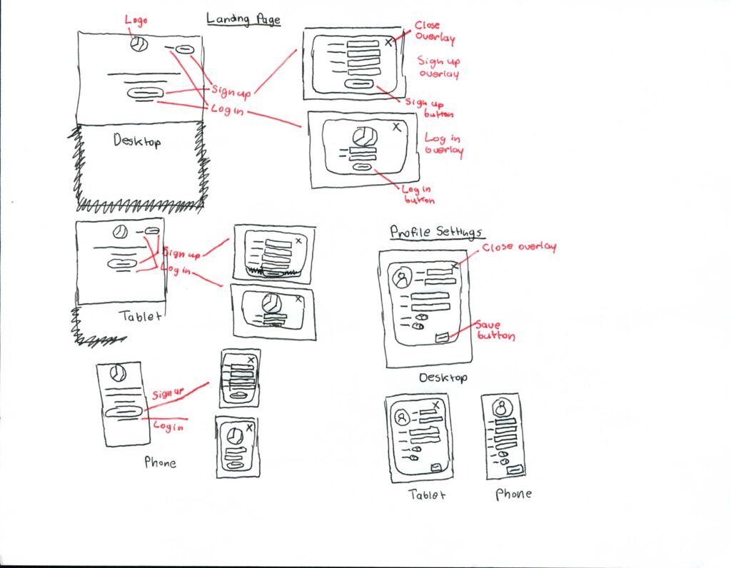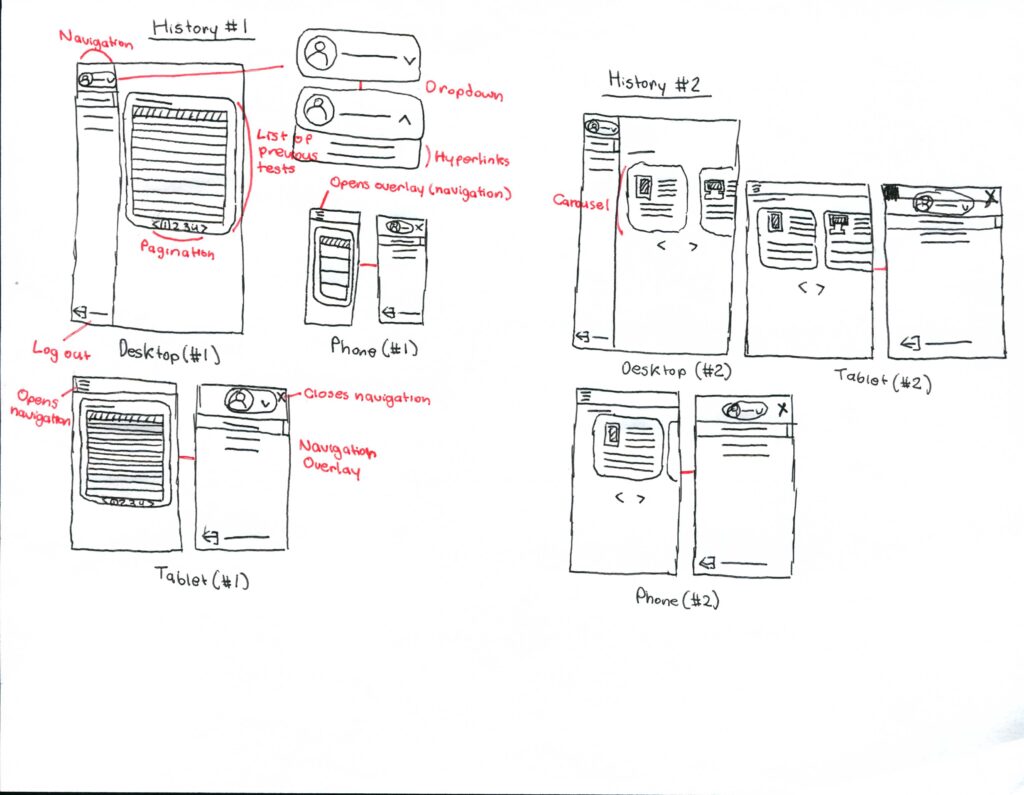I first started by sketching out my versions of the web application screens, using the layout of the current web app as a starting point.