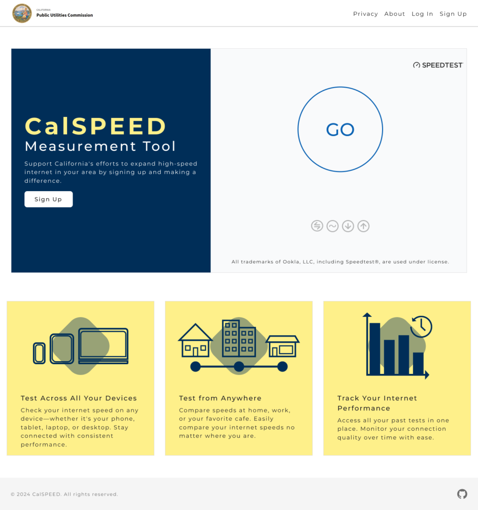 The software engineers implemented a version of the landing page based on my designs. The engineers received feedback on the new landing page design and I was tasked with making further changes to the design. Part of the changes I made included changing the color scheme to match the California Public Utilities Commission (CPUC) instead of going off the previously established CalSPEED branding.